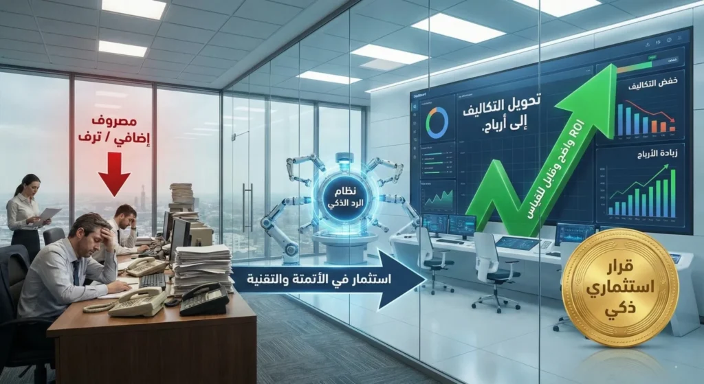 الاستثمار في الأتمتة والتقنية ليس “مصروفاً إضافياً” أو ترفاً، بل هو قرار استثماري ذكي له عائد مالي (ROI) واضح وقابل للقياس. دعونا نحلل كيف يحول هذا النظام التكاليف إلى أرباح.